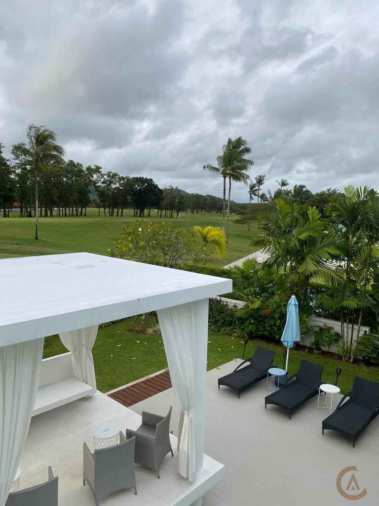 The private pool villa is located in Laguna perfect for families experience on the island of Phuket. Laguna coast and boasts one of the islands best golden sandy beaches. The villa Modern style comes with a modern kitchen with top of the range appliances and cooking equipment. Every bedroom is en suite and comes with toiletries wardrobes and desks. Your private infinity edge swimming pool is surrounded by attractive sunbathing terraces complete with sun beds and umbrellas. The villa have outdoor and undercover seating and dining options perfect for all fresco dining and catching the stunning with the Golf view sunsets.The villa have WiFi connection throughout living area and Flat Screen Satellite TV’s are installed in every bedroom as well as the living areas. maid quarter and laundry area Freehold Thai company. membership golf club